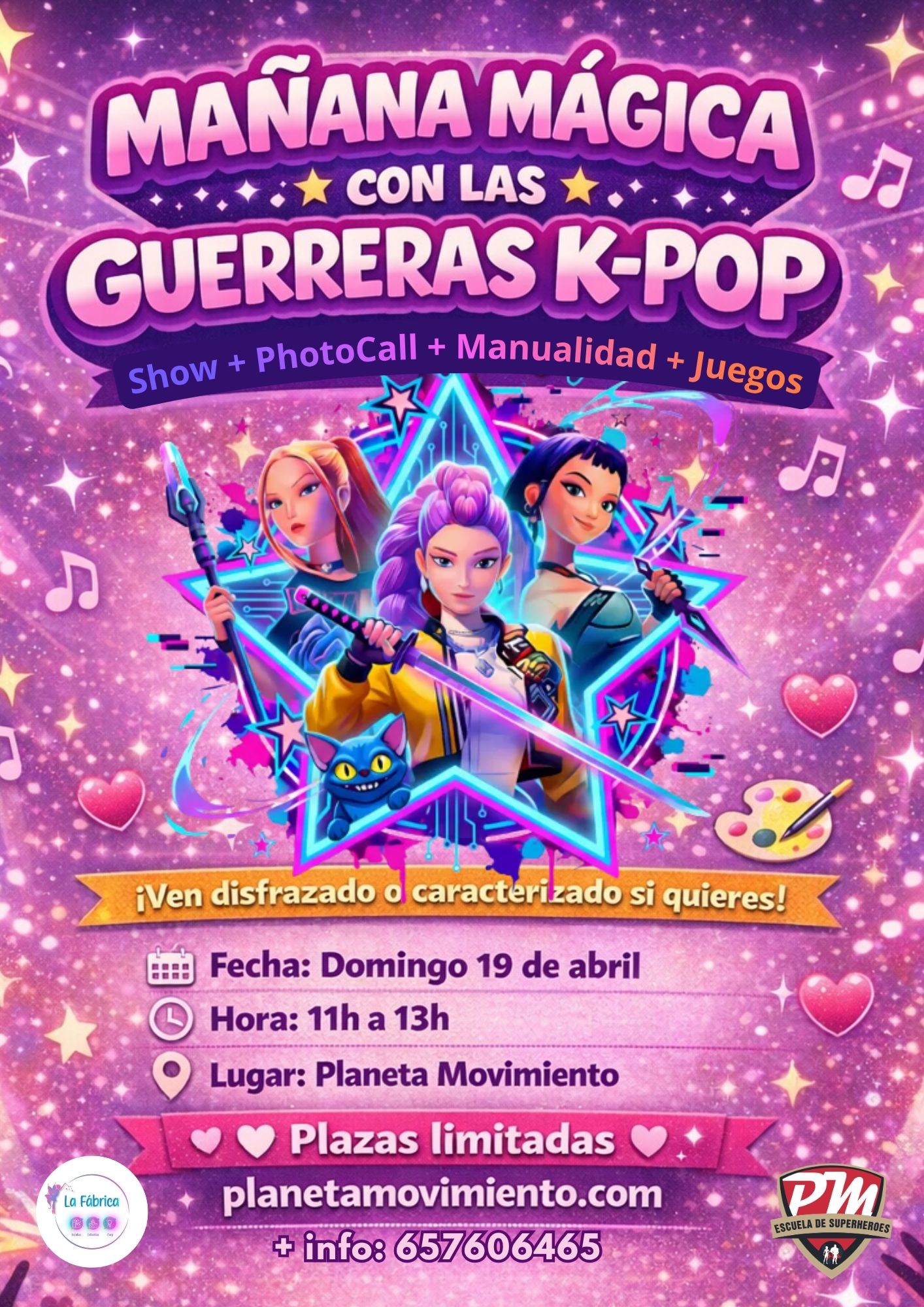 Pasa una mañana mágica con nuestras Guerreras K-POP. Actividades: Circuitos de agilidad, manualidades y juegos cooperativos, Show de animación y Photocall con los personajes más famosos.